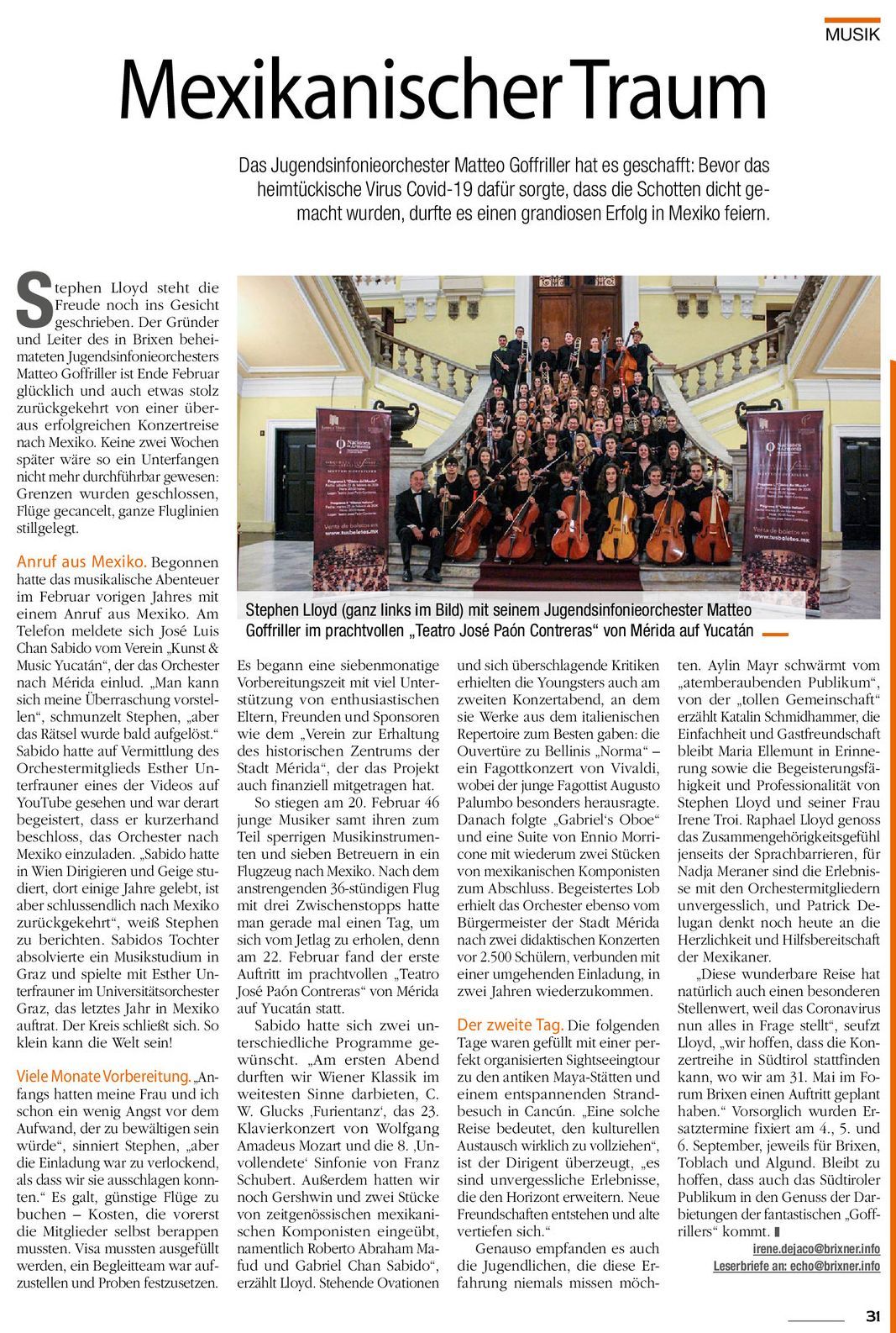 Press releases:•https://www.poresto.net/2020/02/28/derroche-de-talento-y-juventud-de-la-sinfonica-italiana-matteo-goffriller/•Dolomites, Released on 05.03.2020•Brixner, Released April 2020 (https://epaper.brixner.info/de/profiles/9c8640fe337b/editions/70f484920bfec18efa6f)