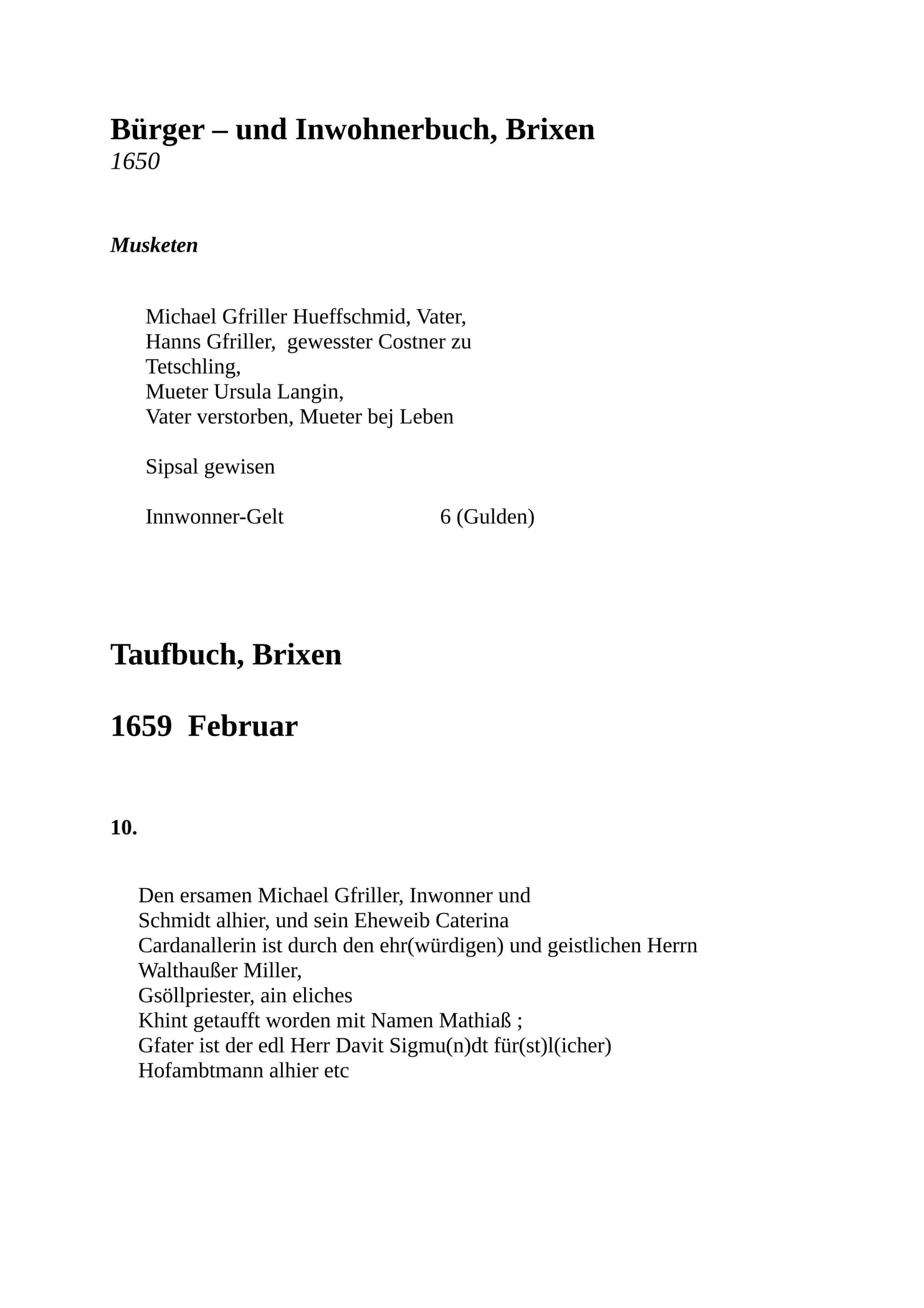 In 1996, during a visit to London to see Charles Beare, one of the world's most renowned experts on string instruments, Stephen Lloyd was able to confirm the sensational discovery that Matteo Goffriller was not born in Venice, as originally thought, but in Brixen on February 10, 1659. This fact was completely unknown to the city of Brixen. Finally, with the help of several original documents, Lloyd managed to locate Matteo Goffriller's birthplace at Trattengasse 20 in Brixen. Since the origins and career of this world-famous master so aptly symbolize the principle that "music spans the world," Irene Troi and Stephen Lloyd decided to name the association and the youth orchestra after him.